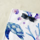 Tartarugas marinhas e corais marinhos em um padrão uniforme com fundo branco.