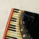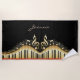 Teclado ouro moderno, notas e clave tripla com faixa vermelha sobre fundo preto. Monograma opcional