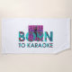 Born to Karaoke slogan on beach towels, t-shirts, mugs, stickers, and other gifts for that karaoke singer who loves the fun of a night our with her singing friends.