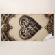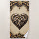 The heartbeat of the ancient gods: A magical Celtic frame. An ornate, Celtic-inspired frame with complex knot patterns in gold and brown tones. A spade-shaped ornament with a knot is located at the top, and a heart-shaped knot is located at the bottom, flanked by vibrant orange and red flowers. The design combines tradition, strength, and vitality.