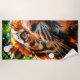 Esta toalha de praia tem um tigre fotografado nela.