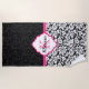 Cor damasco floral preto e branco moderno e simples e estrutura rosa quente e faixa. Monograma opcional