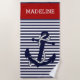 Desfrute de um conforto total na praia ou sentada ao lado do polo, e legal e seca com esta toalha de praia divertida, colorida e confortável. Saia na areia com esta bela âncora contemporânea de naves, num padrão clássico e escuro de marinho azul e listras brancas. Com espaço para personalizar ou personalizar com nome, iniciais ou monograma de sua escolha ou qualquer tipo de expressão náutica como "Navio Ahoy", "Sail Away", "Anchors Aweight" ou "Bon Voyage", em um fundo vermelho escuro. Criado para o capitão, amante do barco, navegação, férias e dias de verão ensolarados e brilhantes na água ou na praia.