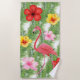 Esta toalha de praia é mostrada em flores tropicais bonito e em design do flamingo.
