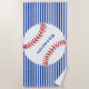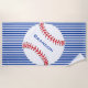 Beisebol Design Beach Toel com personalização opcional. A cor da faixa azul e a cor do nome azul podem ser alteradas para a cor escolhida.