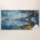 Esta toalha de praia tem uma encantadora paisagem de Parisienne que inclui a torre Eifel no estilo de abstrato expressionismo.