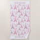 Torres Eiffel ilustradas em rosa e roxo com corações desenhados à mão num padrão repetitivo. Personalize com seu nome ou mensagem em fontes roxas.