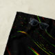 Imagem com vestígios de cor vermelha e limão-verde em fundo preto. Traços ondulados ou tortos.