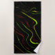 Toalha De Praia Traços longos, verdes e vermelhos ondulados, fundo