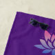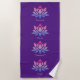 Esta grande toalha de praia tem uma cor de fundo roxa rica. O design apresenta quatro grandes flores de lótus azuis-cor-de-rosa, cada uma com uma legenda editável separadamente. Ou você pode usar a PAZ DE TRANQUILIDADE DE RESPIRAÇÃO mostrada. (Edite este texto para o seu próprio texto preferido).