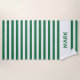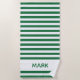Uma toalha de praia moderna e listrada com padrão de listras verdes e brancas. Personalize com seu nome.
