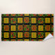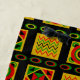 Esta toalha de praia tem um design de História Negra de círculos, triângulos, diamantes, linhas e ziguezags formando um padrão.