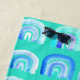 design de arco-íris em aquarela por um designer de um arco-íris de estilo retrô azul turquesa pastel em engajamento de cores serenas azuis retro aqua. Um estilo de verão lembrando-vos de céus azuis e otimismo