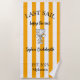 Celebre a noiva com um estilo vibrante de verão com esta toalha de praia Última Vela Antes do Véu! Com listras náuticas em amarelo cítrico e branco, uma ilustração divertida de um copo de champanhe e nome, local e data totalmente personalizáveis - esta toalha é um ótimo souvenir para a despedida de solteira na praia ou uma viagem de destino. Personalize para cada membro da comitiva da noiva e navegue para as celebrações com estilo!