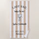 Celebre a noiva em estilo sofisticado com esta toalha de praia personalizada Última Vela Antes do Véu! Com listras suaves em bege neutro e branco, uma ilustração de taça de champanhe comemorativa e campos de texto personalizados para o nome da noiva, ano do evento e local — é o presente perfeito para festas de despedida de solteira na praia ou fins de semana de núpcias de destino. Elegante e divertida, esta toalha é indispensável para qualquer viagem de despedida de solteira!