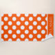 Grandes bolinhas brancas em um fundo da laranja brilhante do verão. Personalize a harmonização da listra alaranjada e branca na parte inferior com sua escolha do texto conhecido ou especial. Os acessórios do divertimento estão disponíveis.