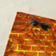 Manchas vermelhas gravadas, arranhões, granulados ou diferentes e com efeito de parede do tijolo inclinante, com manchas douradas e amarelas nas articulações do tijolo