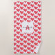 Toalha de praia vermelha personalizada teste padrão do monograma do coração da aguarela. Adicione a inicial e primeiramente ou o sobrenome em um quadrado branco na pia batismal cor-de-rosa e preta. Um teste padrão de repetições da aguarela. www.SamAnnDesigns.com