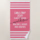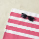 Toalha de Praia Personalizada com Listras Rosa Coral e Branco para a Viagem das Meninas, Amigas de Férias, Viagem de Praia ou Cruzeiro com texto e frase editáveis para sua data, destino ou localização, nome e citação divertida como "praias, bebidas e amigas" é o presente perfeito para sua turma de viagem ou damas de honra.