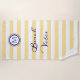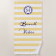 Adicione um toque extra aos seus dias de praia com esta toalha listrada personalizada. Apresentando listras amarelas e largas brancas de leitelho, esta toalha exibe as palavras "Beach Vibes" em marinho náutico, juntamente com uma inicial de monograma personalizada dentro de uma "moldura" ao estilo do retículo. Com sua design e seu toque pessoal, é um presente pensativo para qualquer um que ama um olhar relaxado e inspirado no oceano.