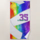 Esta colorida toalha de praia de vôlei para meninas apresenta um arco-íris de cores abstratamente ampliadas - seu nome e número de camisa são colocados fora do centro, personalizáveis em cores coordenadas - por katz_d_zynes