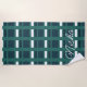 Toalha de praia Xadrez branca-alta personalizada, marcada com azul-lacrimejante. Personalize com seu nome.
