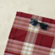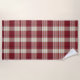 Um design de toalha de praia eterno com xadrez vermelha e bege elegante, combinando sofisticação e elegância com uma estética quente e refinada.