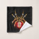 Aranha mecânica, com pá-pá de ouro, engrenagens de latão e uma lâmpada de vidro vermelha sobre fundo preto. Estilo Steampunk.