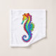 Articulação artificial, brilhante, arco-íris, cavalo de mar poligonal sobre fundo branco. Tatuagem brilhante.