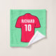 Crie um Flannel de Rosto de Lava com sua escolha de uma camisa de futebol com um nome e número adicionados - uma ideia única e ponderada de presente para qualquer apoiante de futebol! Este pano de lavagem, também conhecido como flanela, apresenta uma imagem principal vibrante mostrando uma camisa de futebol, pronta para personalização. Você tem a habilidade de adicionar seu nome e número desejados, fazer-o como um item único para você mesmo ou seu amado fanático por futebol. Camisa Vermelha de futebol.