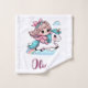 Esta toalha alegre apresenta uma menina bonita voando num Unicórnio colorido.