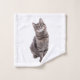 Uma cinza adorável, puxada por um gato, olhando para cima, cortada sobre um fundo branco