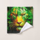 Este pano de lavagem tem um leão artístico nele.