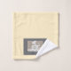 The Wash Cloth features a calm, sand-like design in warm beige and natural tones, reminiscent of fine beach or desert sand. A subtle artistic illustration is printed: a young woman sitting cross-legged in a classic yoga pose. Insert your name at the bottom of the Wash Cloth.