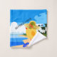 Pintinho aposentado na praia em seu chapéu de sol e flip-flops