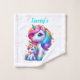 unicórnios bonito e coloridos, monogramados, sobre fundo branco com seu nome, neste pano de lavagem.