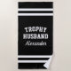 Roupa engraçada de praia do TROPHY HUSBAND para homens. Bonita toalha de sola personalizada para futuro marido, noivo, marido, cara de casado, etc. Legal citação do acessório de verão para ele. Faça sua própria toalha de piscina. Presente humorístico para festas de casamento, despedida de solteiro, festa de solteira, aniversário, lua de mel, etc. Personalizável em cores diferentes. Exemplo preto e branco. Modelo de tipografia masculina. Adicione sua própria citação engraçada, etc. Crie a toalha dele e dela para a noiva e o casal do noivo.