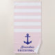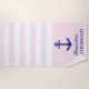 Toalha de praia personalizada de faixa rosa com âncora náutica azul marinho
