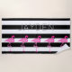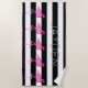 Esta toalha de praia é moderna e na moda com as listras preto e branco corajosas e os flamingos cor-de-rosa. Personalize-a com seu nome.