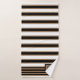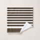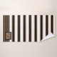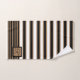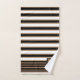 Toalha de banho listrada listrada, em monogramas modernos, preta, branca e castanha, definida com um padrão riscado horizontal e a negrito. Uma placa decorativa em tons pretos e castanhos tem um monograma de uma letra preta. Personalize a carta para atender às suas necessidades. A decoração do banho está disponível.