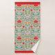 Conjunto de toalhas de banheiro com padrão floral estilizado, com florais verdes cor de laranja vermelhos em um fundo de cinza leve com bordas vermelhas. Estilo artístico. Fresca o decor do banho com um padrão floral rico.