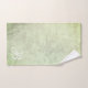 Um monograma elegante de toalha verde de sábio com iniciais brancas. Um efeito de textura luminosa manchada subjugada. Uma cor de sotaque perfeita para um banheiro terreiro neutro.