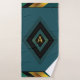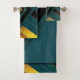 Perfeito para a caverna masculina, este elegante conjunto de toalhas personalizadas adiciona instantaneamente um toque de estilo ao seu espaço. Apresenta toalha de mão e pano de lavagem padronizados com tiras grandes transversais geométricas em azul de saxe profundo, marrom e amarelo-ouro. A toalha de banho é feita em azul de saxe profundo sólido, acentuado com bandas impressas com o mesmo padrão listrado e fita escura fina. Personalize-o adicionando seu próprio estilo inicial e alterando o estilo de fonte, o tamanho da fonte e a cor da fonte, conforme desejar.