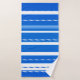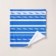 Uma toalha de banheiro náutico listrada moderna, com ondas elegantes, em azul e branco frescos de marinho. Bonito para uma casa de praia ou espaço de vida costeiro.