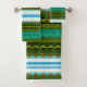Toalha de turquesa, verde e decoradora de ouro com blues. Os sotaques brancos podem ser personalizados em qualquer cor para corresponder ao seu decoro doméstico.