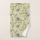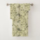 Folhas pintadas em tons de verde-escuro, azeitona, prata, bronze e chalé em um design de tecido sem costura em um conjunto de toalhas de banho chaki.