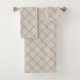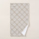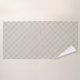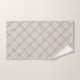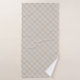 Cores neutras de branco esbranquiçado, bronzeado e cinza numa design xadrez.