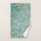 Aprecie este o tom macio, o azul, e as toalhas de banho do verde. Projetado pelo artista Margaret Juul de Florida.