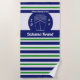 As toalhas de praia personalizadas para meninas são uma maneira perfeita de retroceder fora férias de uma praia da família ou viagens do cruzeiro da família. As melhores férias da praia da família criam memórias da família. Salvar os com as toalhas de praia personalizadas os miúdos e os adultos podem manter-se como uma lembrança. Personalize com sua ordem conhecida das meninas para cada menina, adolescente, ou jovem mulher. Toalhas de praia listradas cor-de-rosa, roxas, e brancas.
