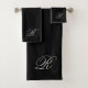 Monograma de Script bonito Conjunto de Toalhas Pretas da Cinza Inicial. Fundo preto com texto inicial de script monograma personalizável em cinzas. Todas as cores são personalizáveis. Convidamos você a visitar nossa, GJ Design Co, loja no Zazzle para ver produtos correspondentes e muito mais.